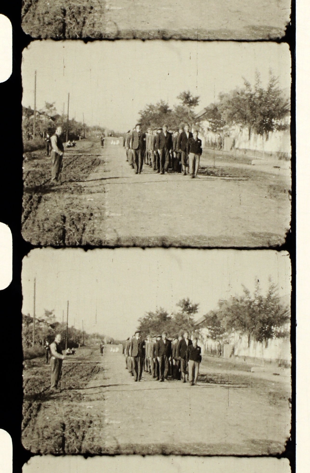 Munkaszolgálatosok menetelnek, az út szélén Kardos Bandi II.