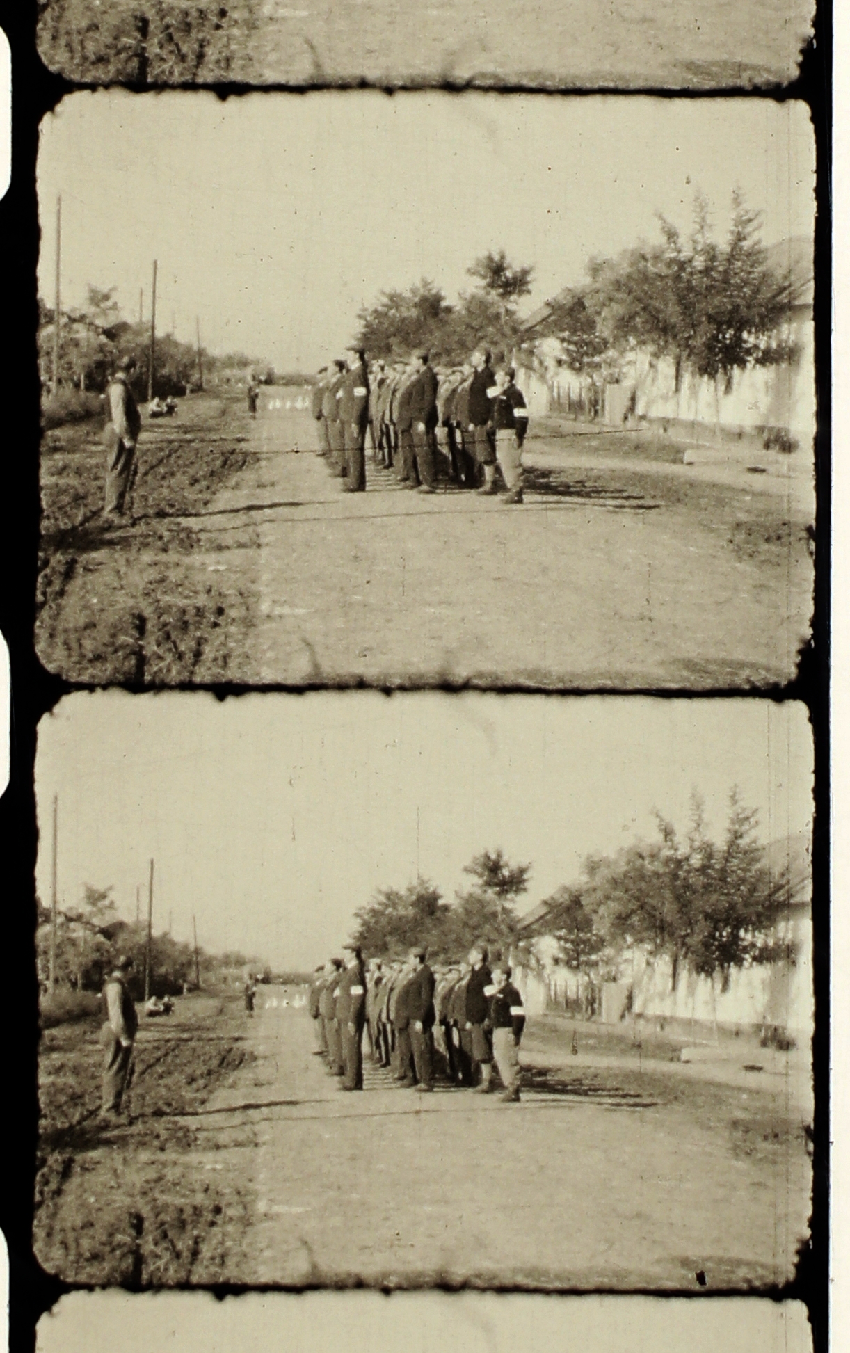 Munkaszolgálatosok sorakoznak Kardos Bandival szemben