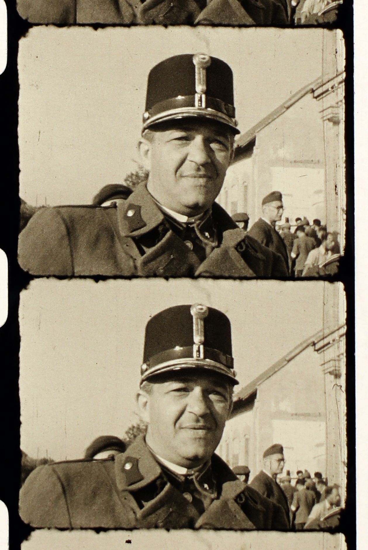 Tiszt egyenruhában, a háttérben munkaszolgálatosok