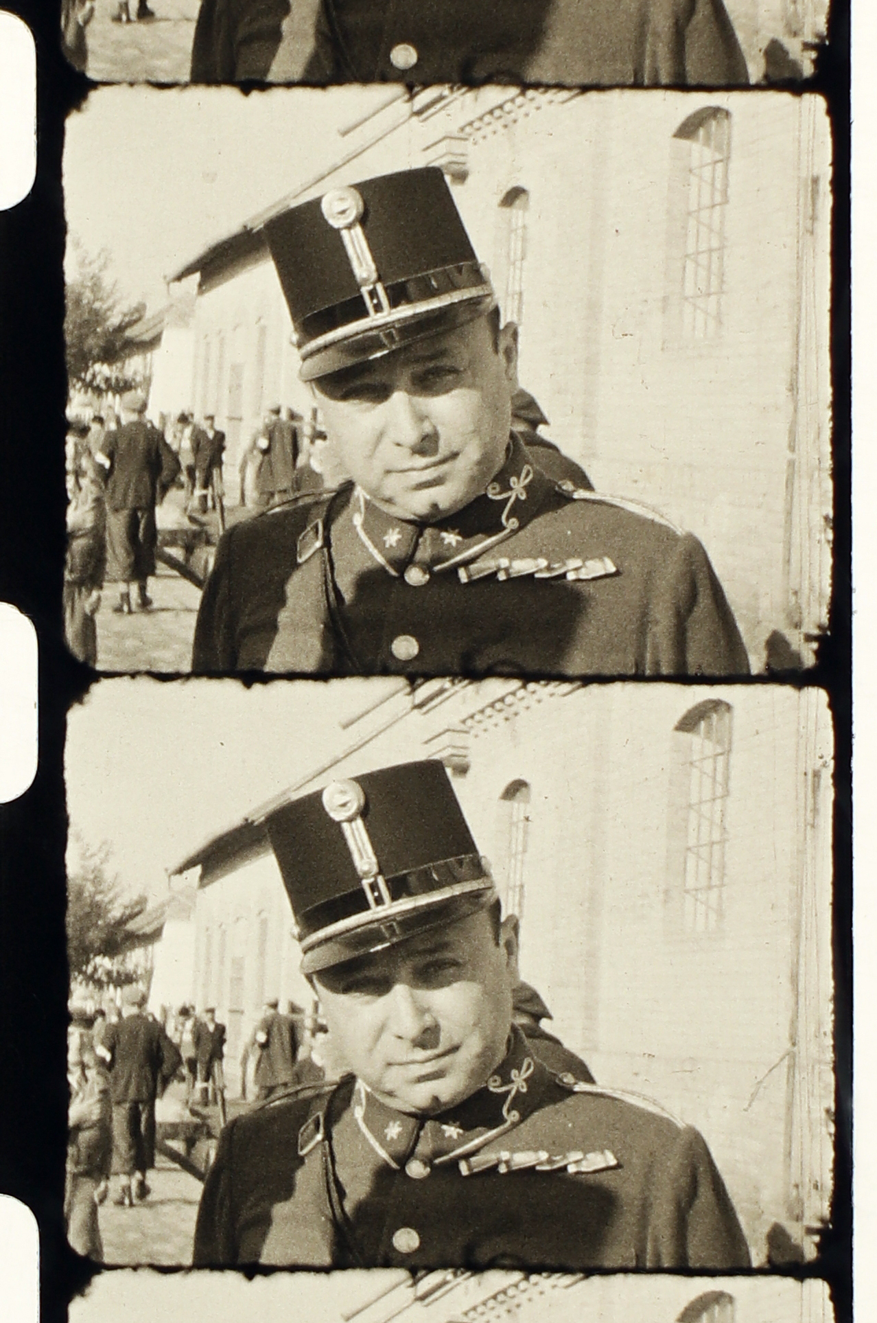 Tiszt egyenruhában a Selmeczi-féle malom előtt