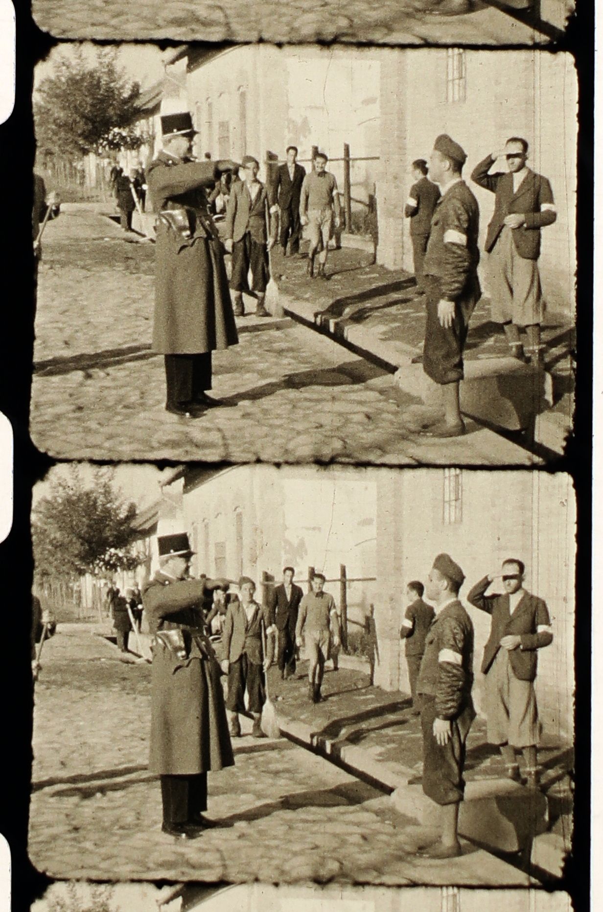 Egy tiszt parancsot ad Pető György munkaszolgálatosnak