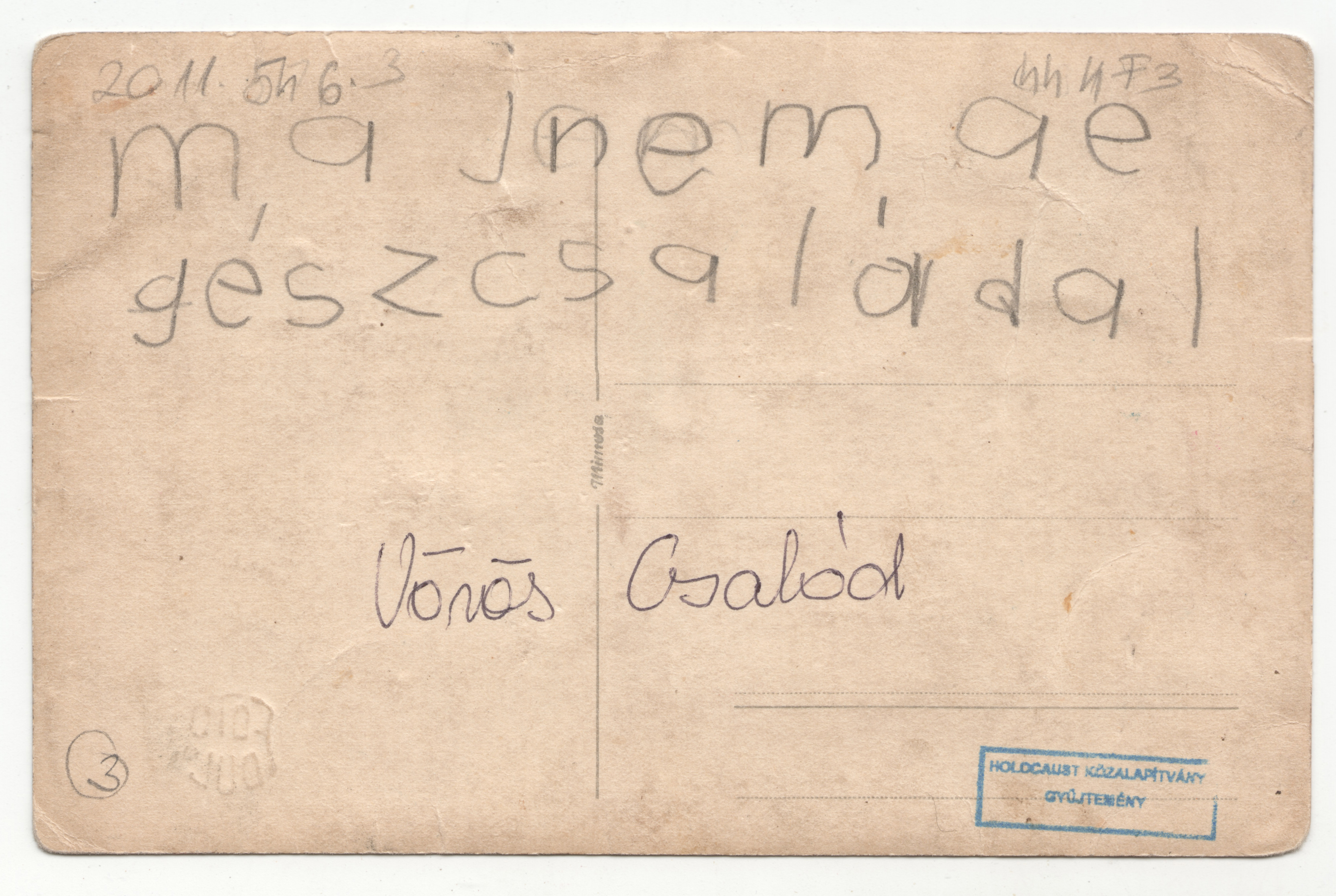 A kép hátoldalán olvasható szöveg: "majnem a egész családdal, Vörös Család"