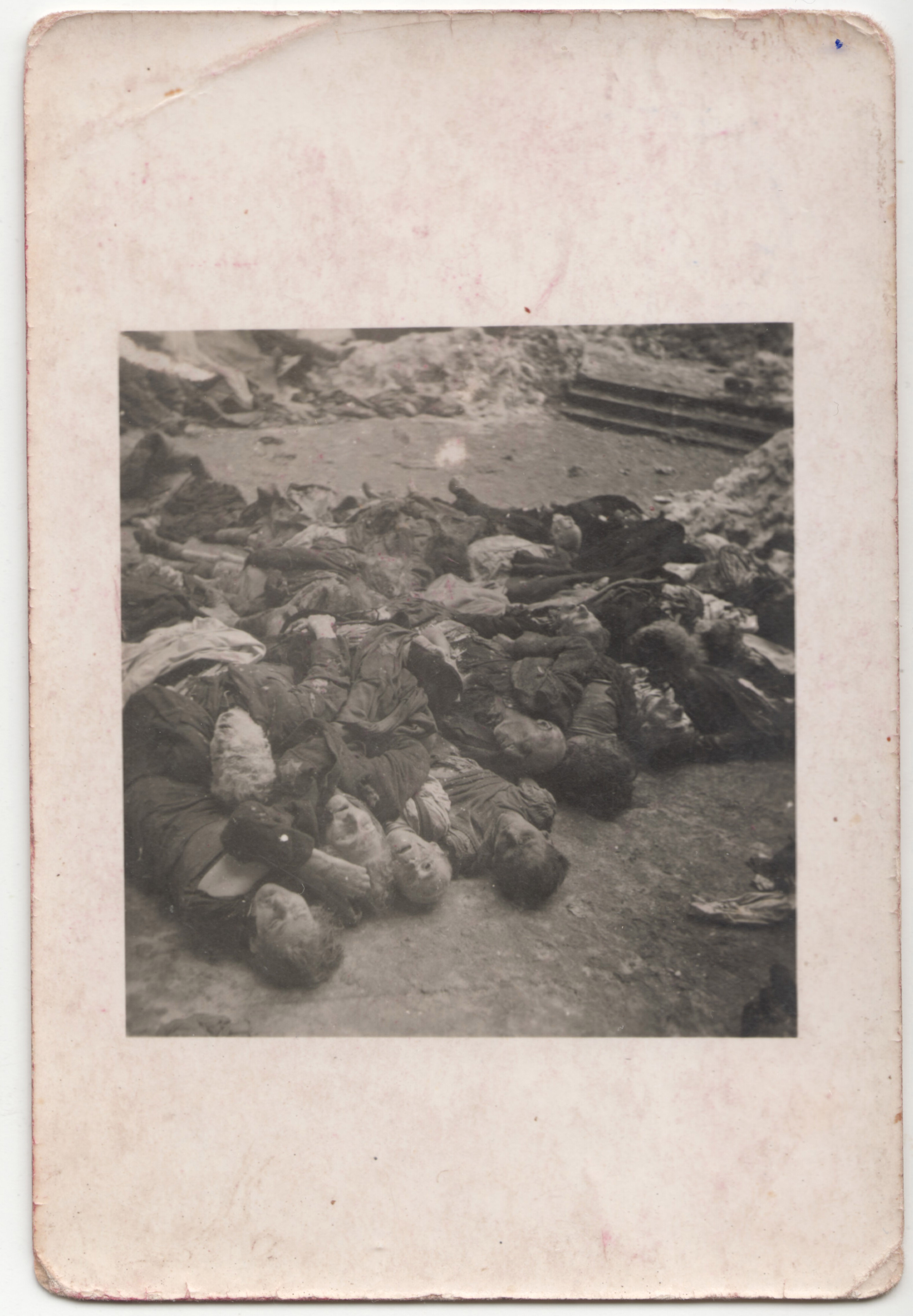 A Dohány utcai zsinagóga udvarán talált holttestekről 1 (amatőr felvételek, 1945.01.18.). A nácizmus bűneit kivizsgáló bizottság orvosokkal, szovjet fotósokkal, fotóriporterekkel közös szemléjekor készült felvétel.