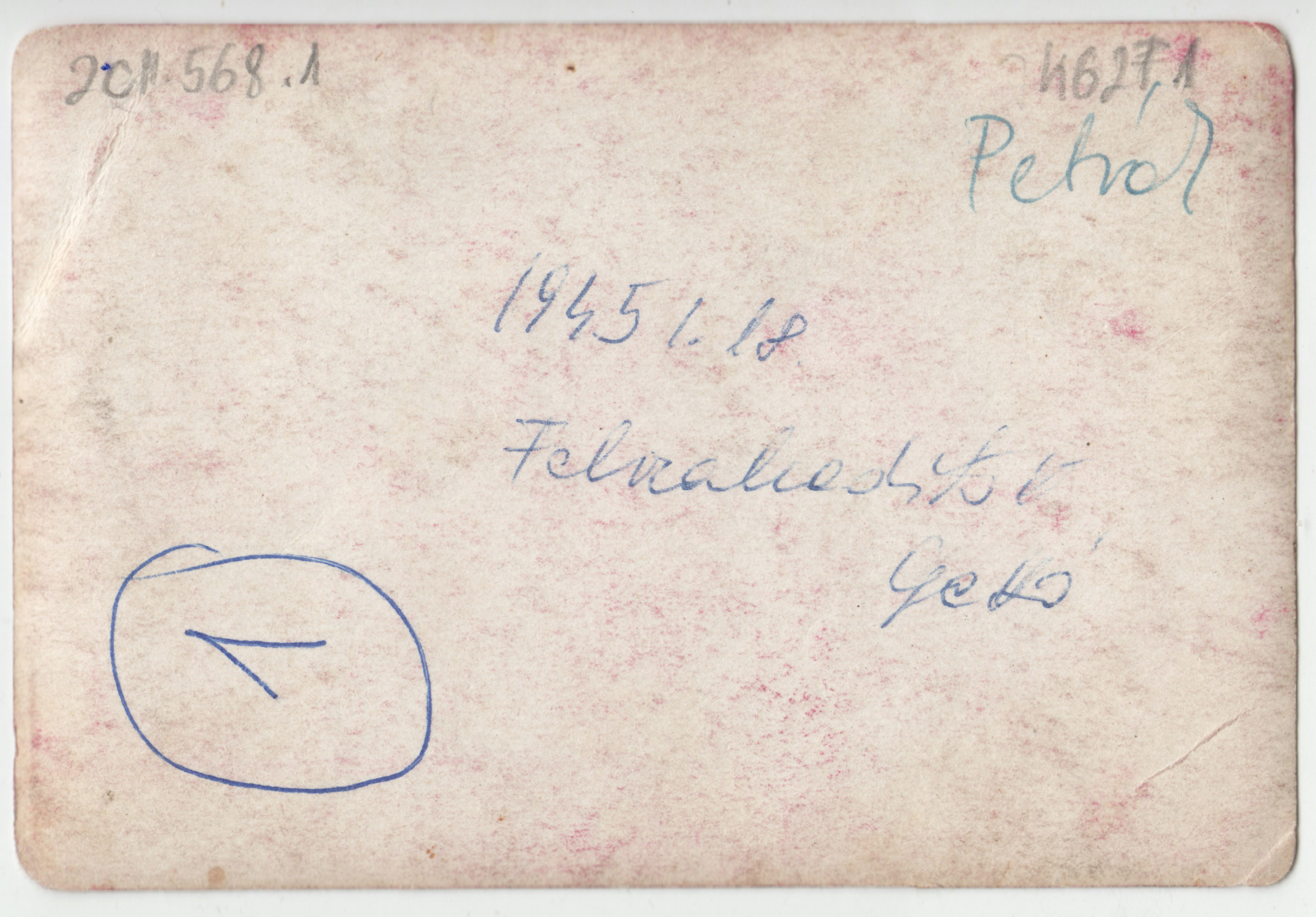 Dohány utca felszabadulás I. hátoldalán kézzel írt szöveg