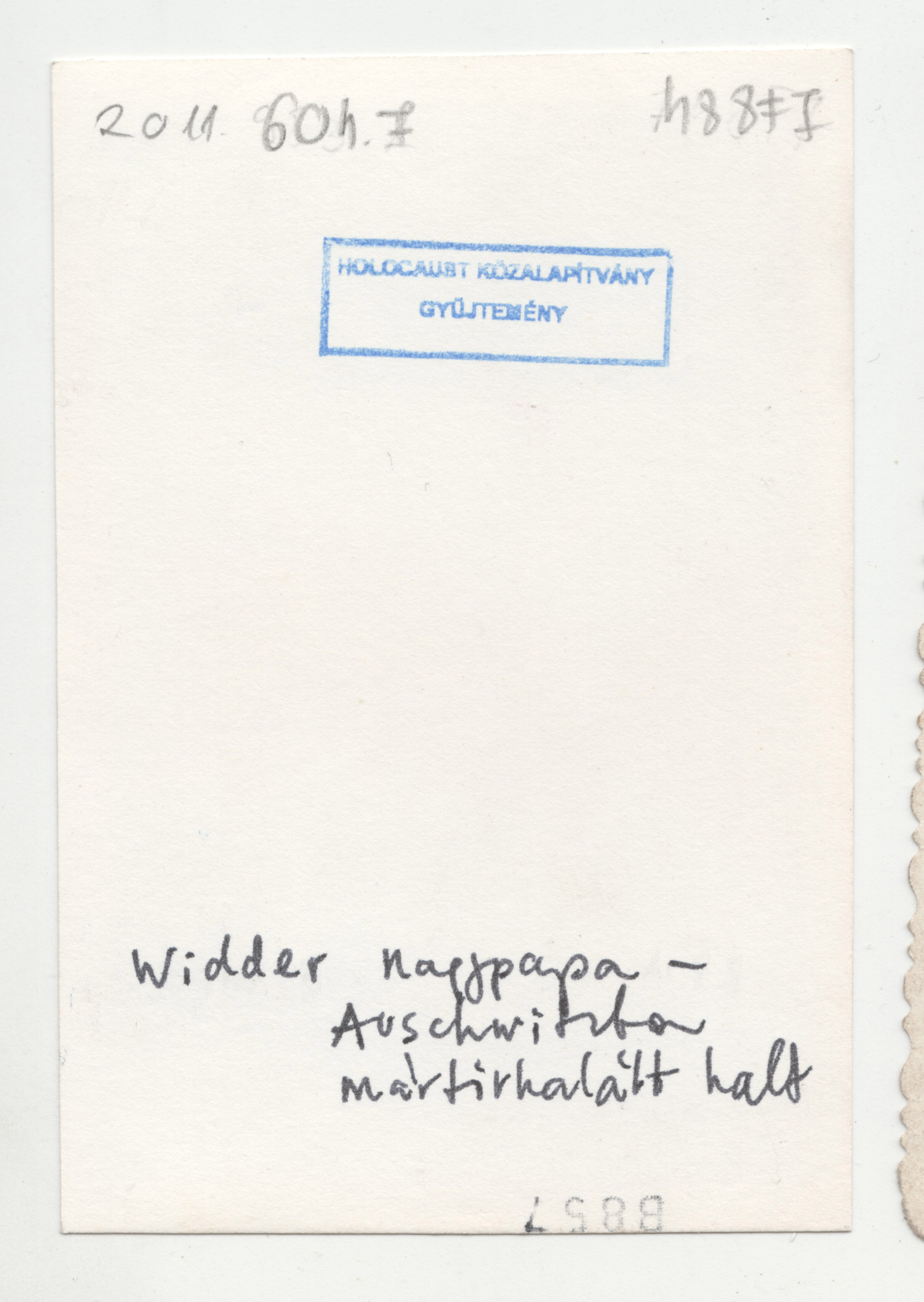 "Widder nagypapa. Auschwitzban mártírhalált halt."