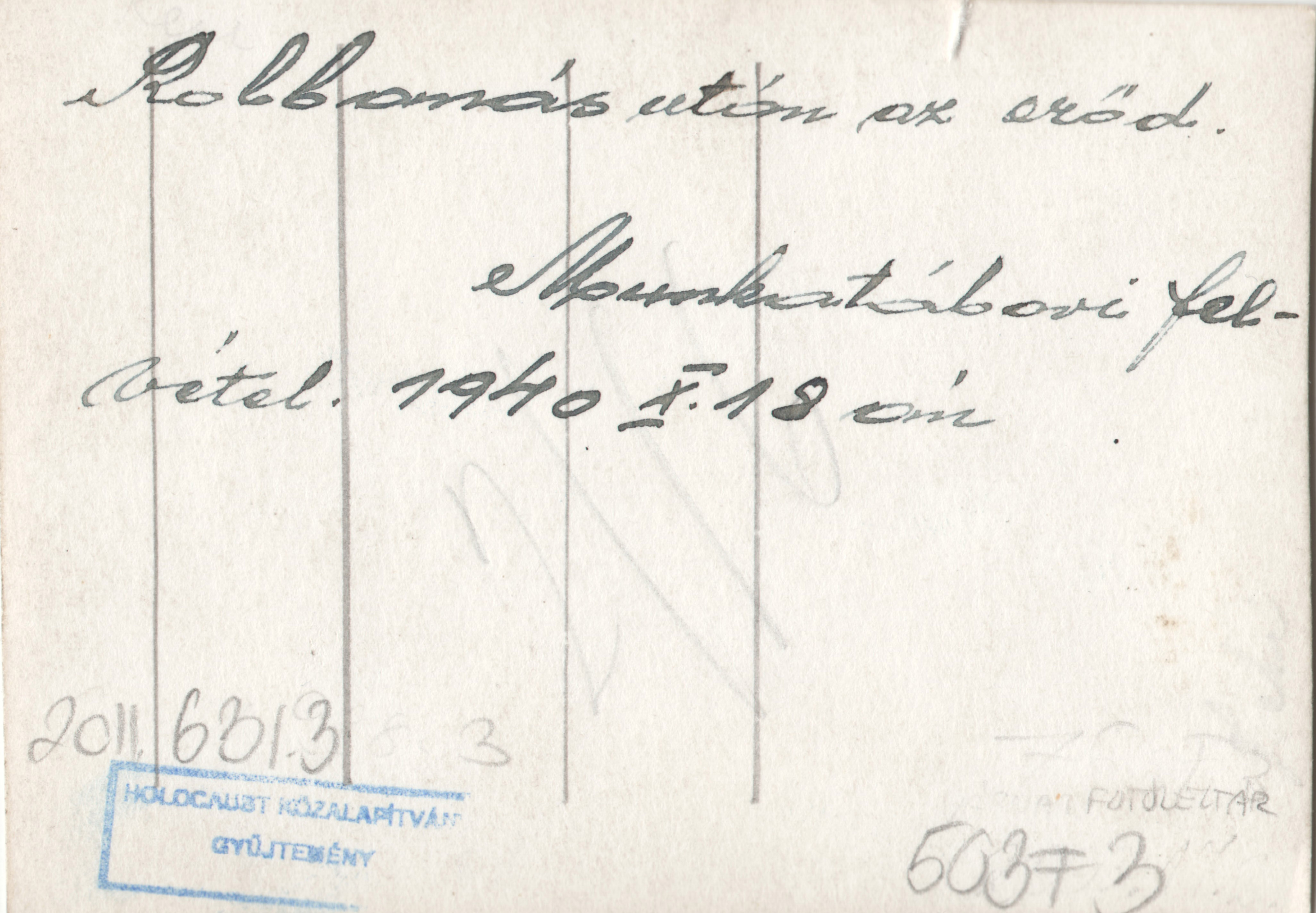 Erőd robbantás után kép hátoldalán kézzel írt szöveg