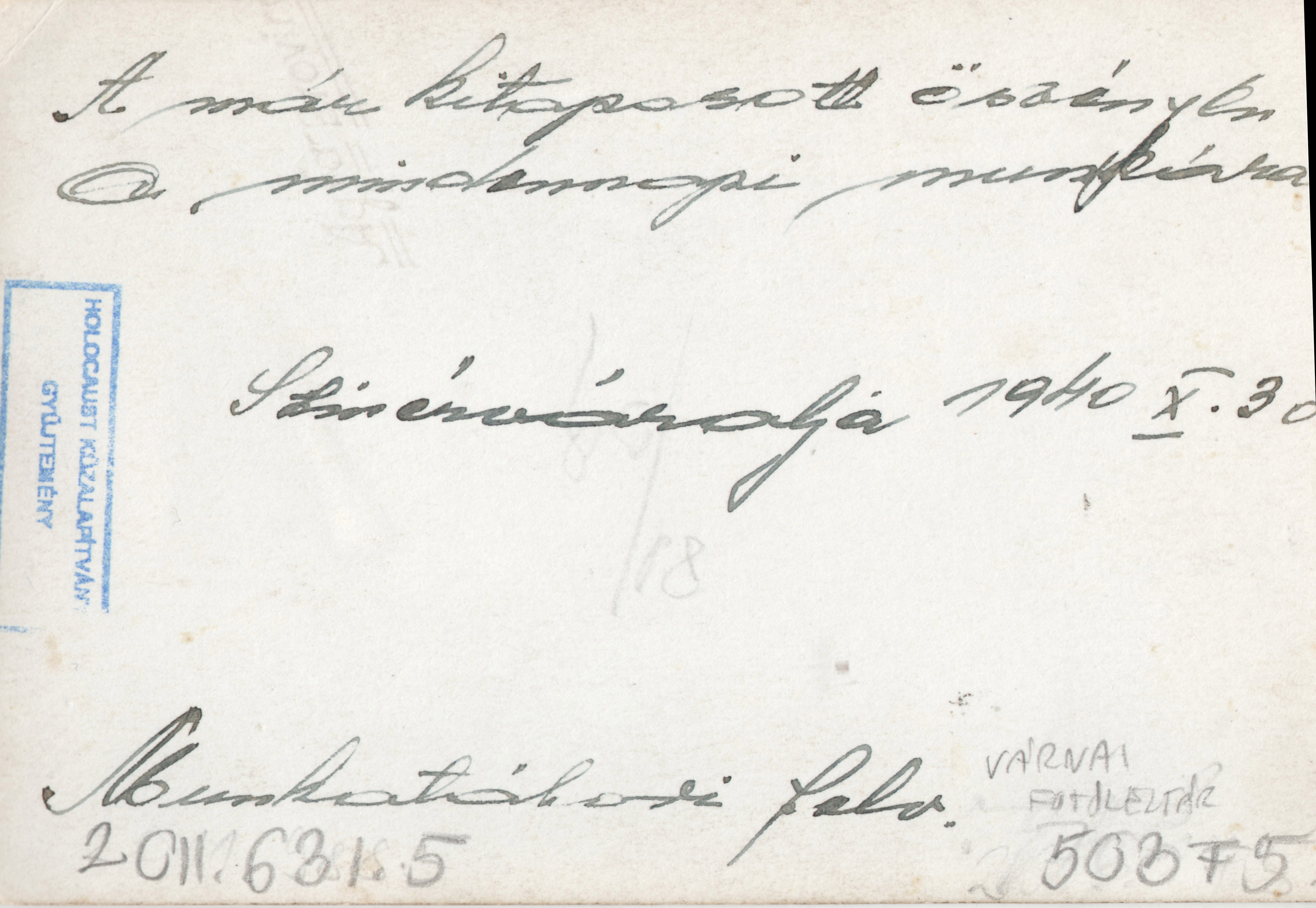"A már kitaposott ösvényen a mindennapi munkára. Szinérváralja 1940.X.30. Munkatábori felv."
