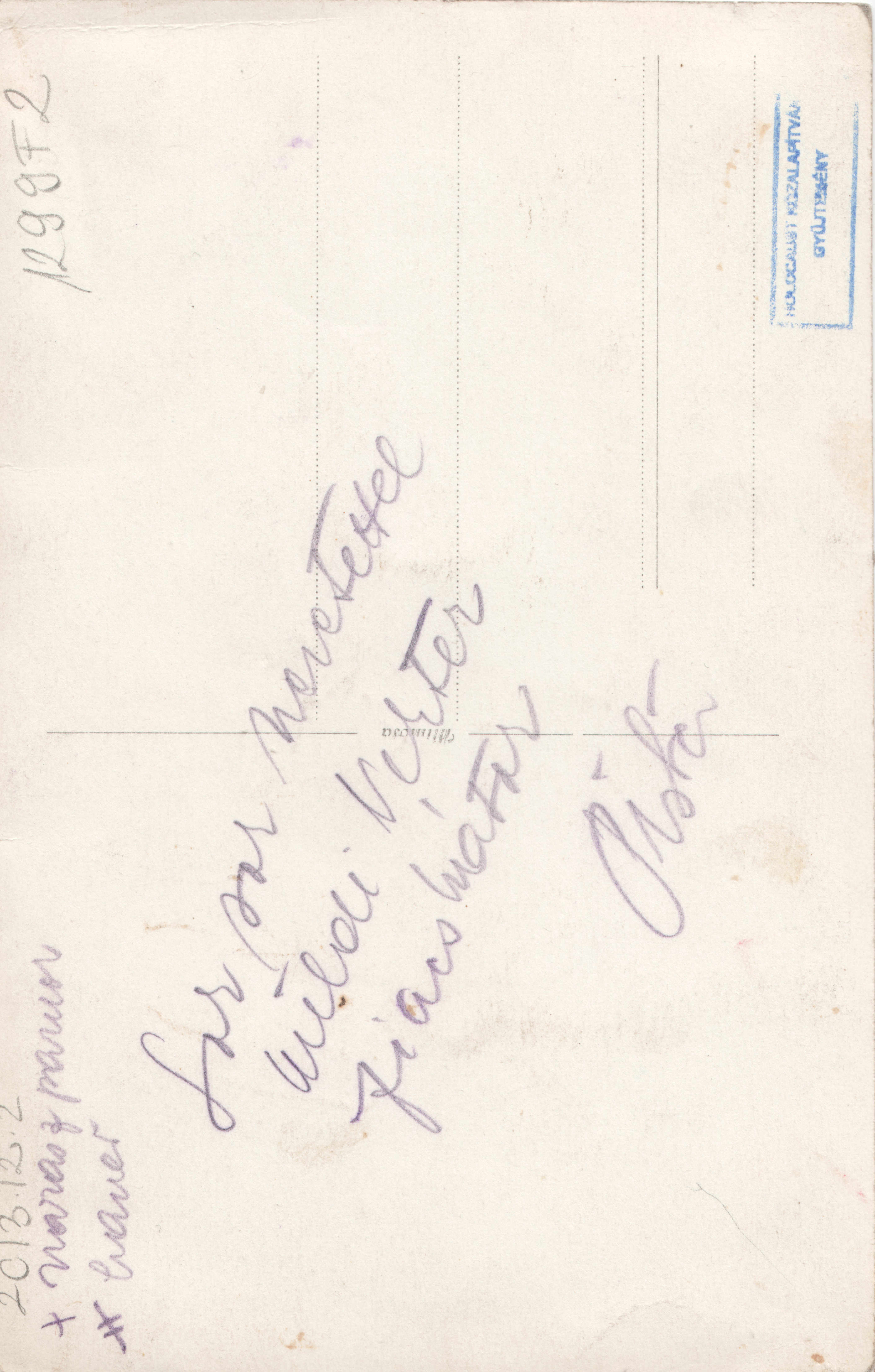 A székelyhídi 201/6. tábori munkásszázad csoportkép hátoldalán kézzel írt szöveg II.