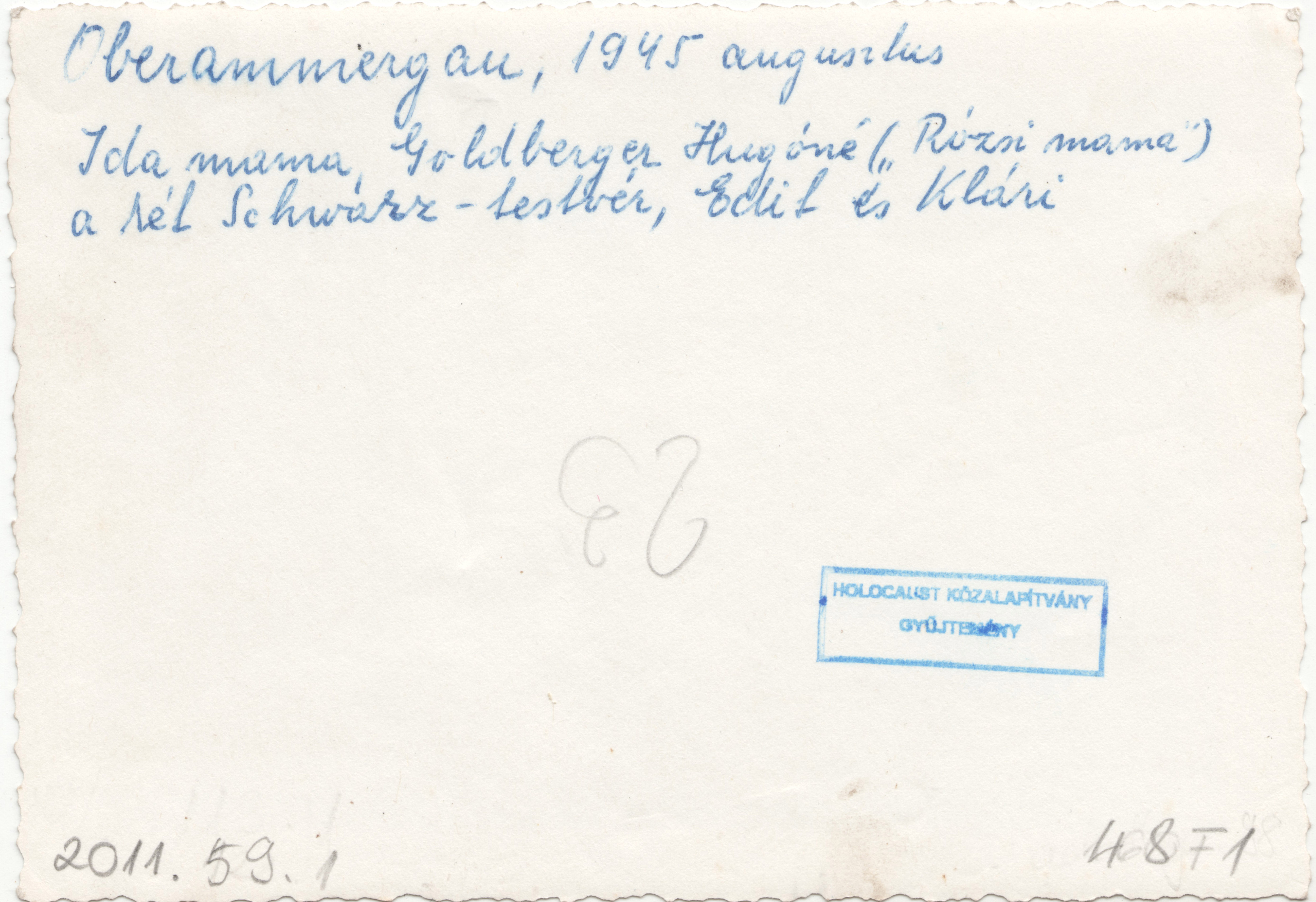 Goldberger Hugóné és barátnői fotó hátoldalán kézzel írt szöveg