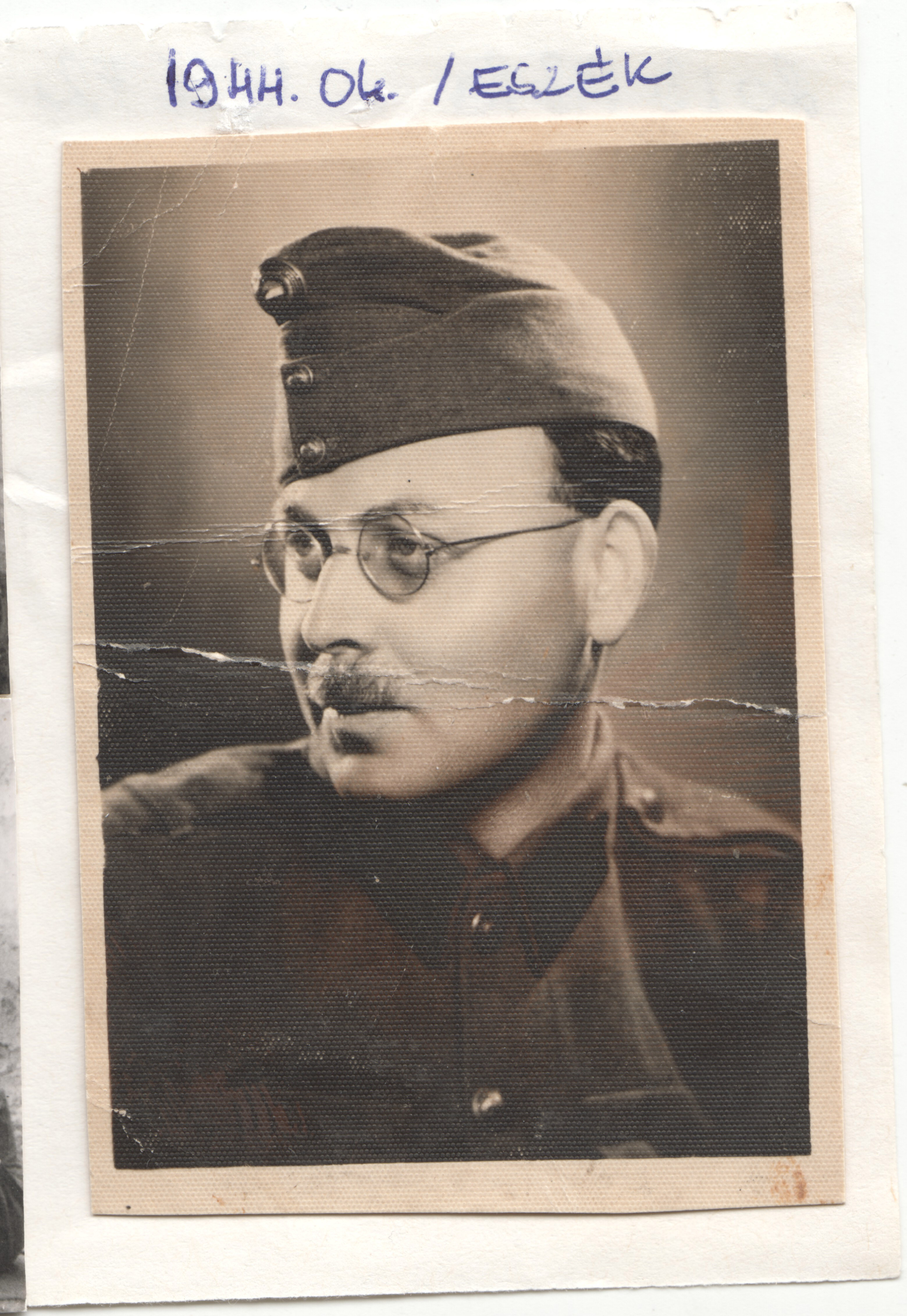 Bakonyi István munkaszolgálatos katonai ruhában és rangjelzés nélküli katonasapkában látható.