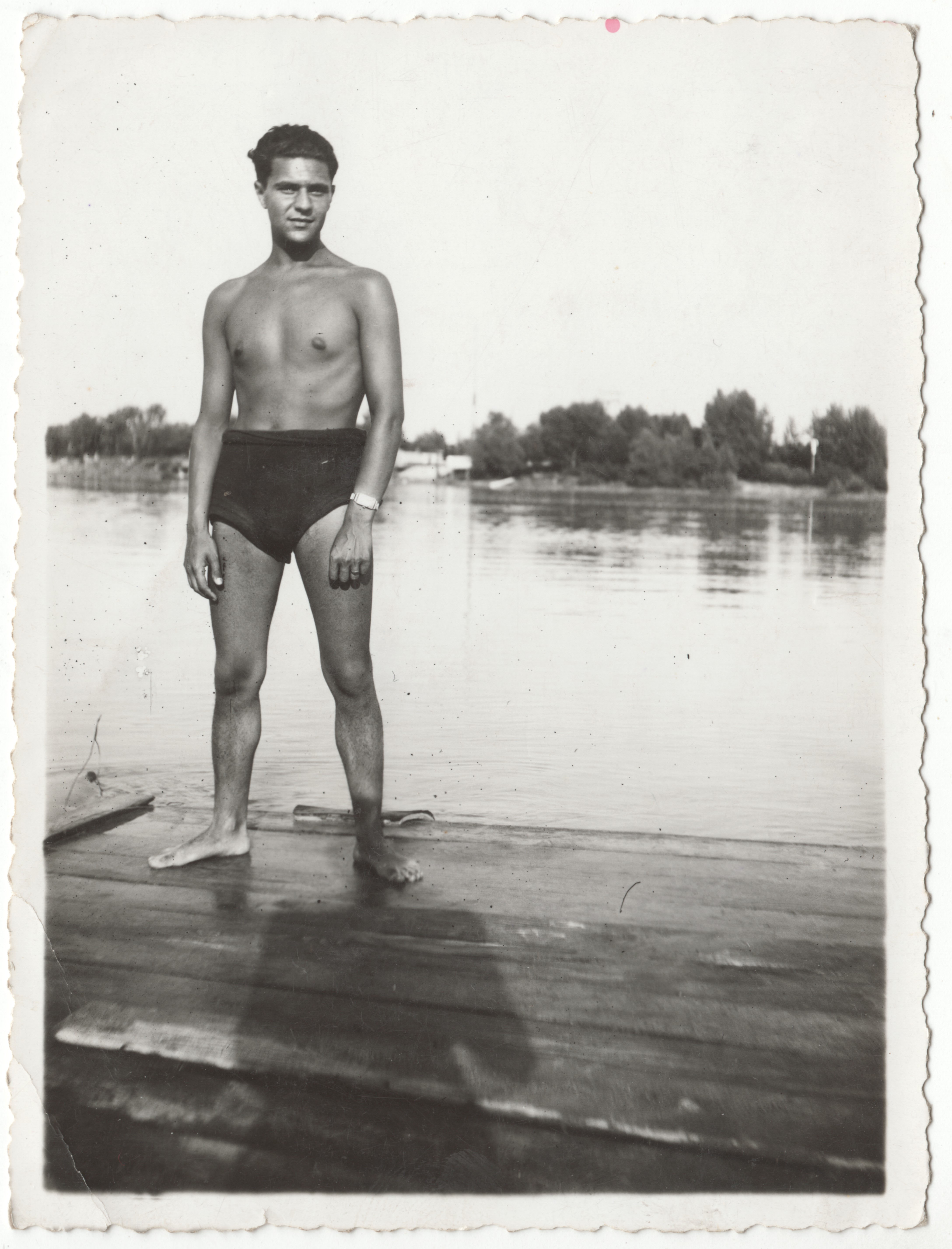 Gerő Andor úszódresszben a vízparton