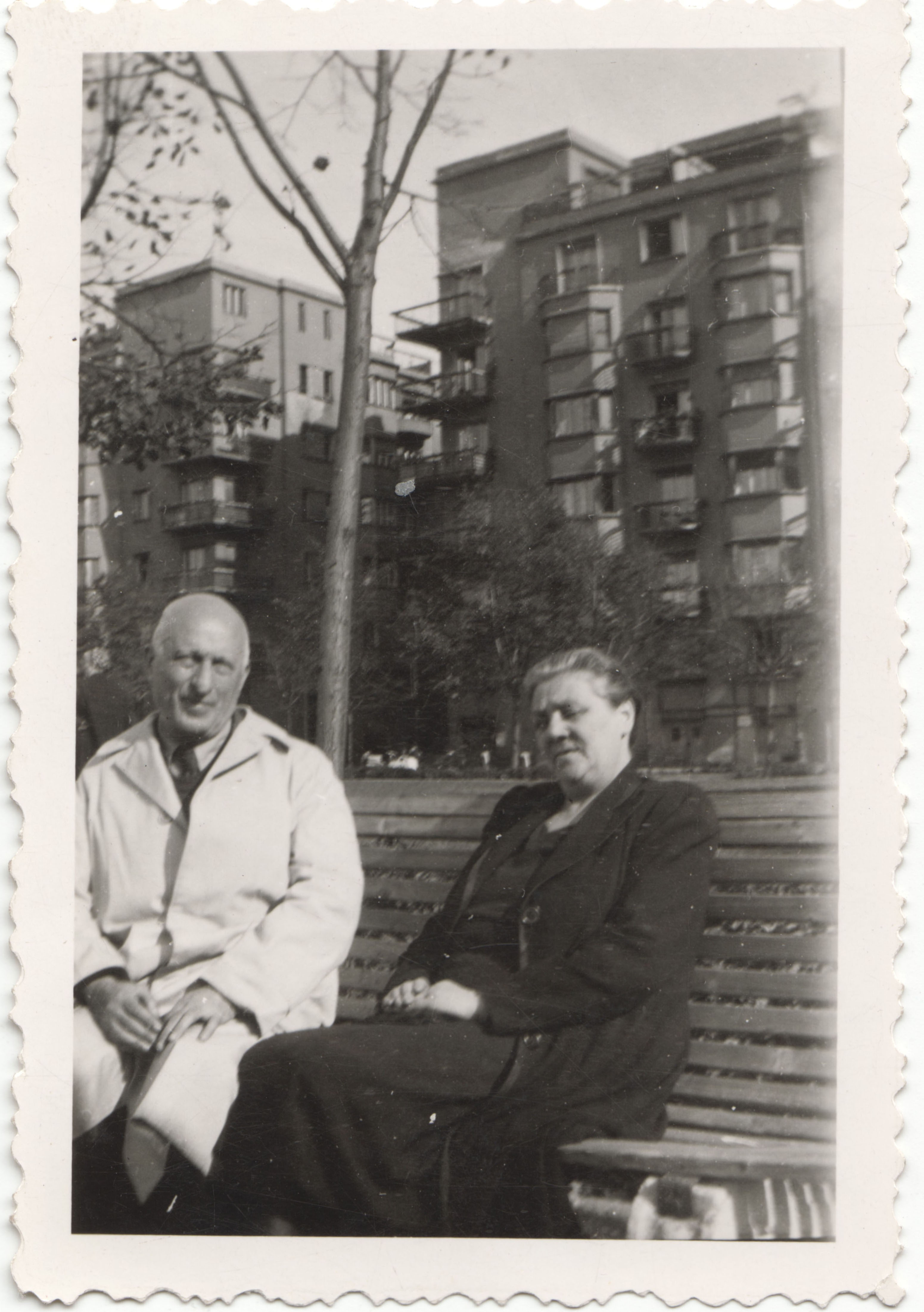 Gold Ede (1882-?) és felesége, Unterberger Elza (1889-?) egy padon ülnek a budapesti Szent István parkban.