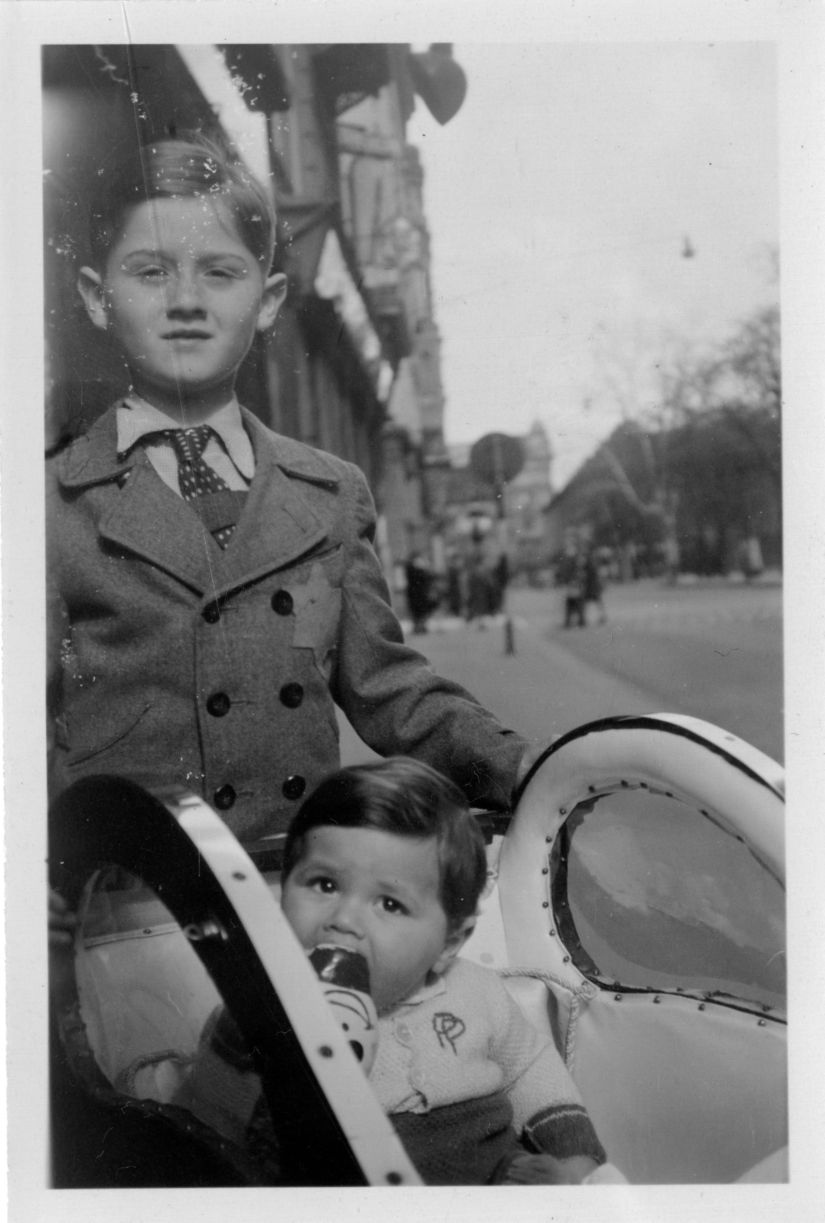 Pártos Péter testvérét, Pártos Pált tolja babakocsijában, mellén sárga csillaggal II.