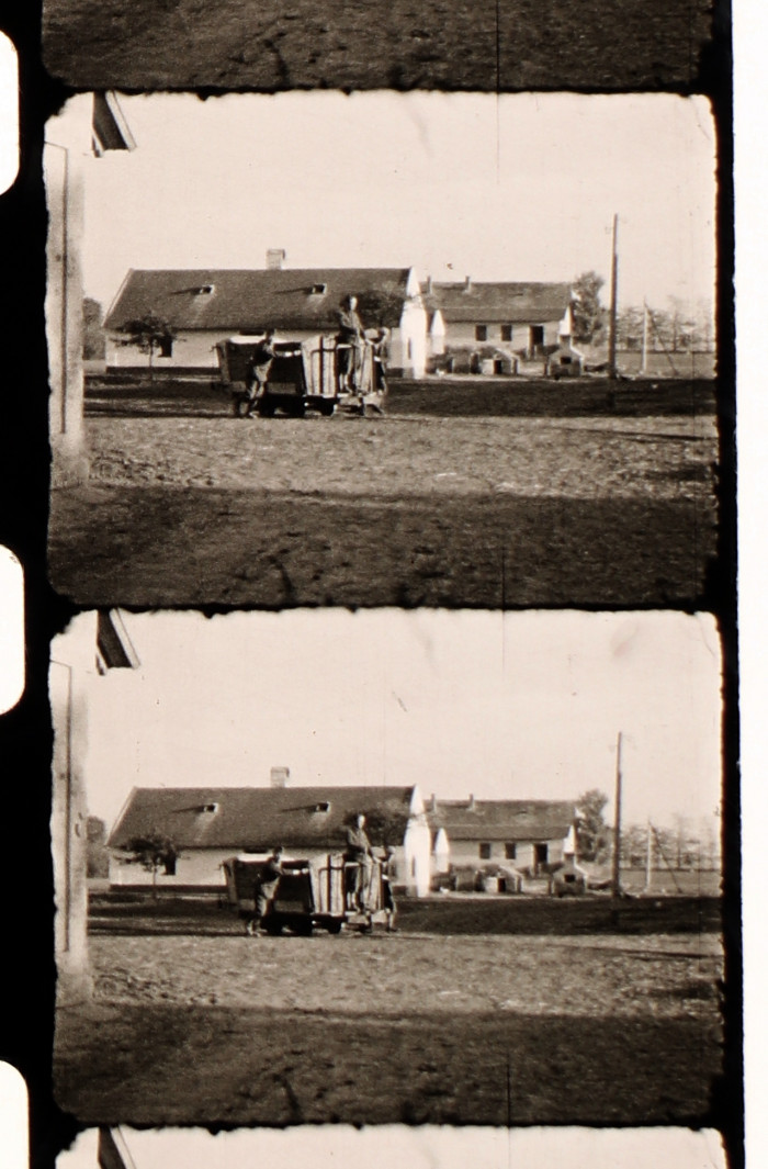 Munkaszolgálatosok egy lórét tolnak a falu közepén
